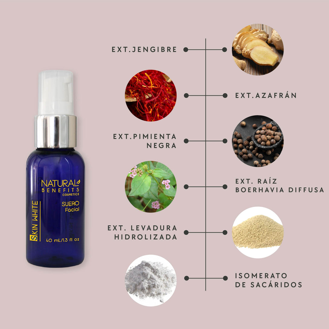 Con alfa-arbutina, resveratrol, jengibre, azafrán y pimienta negra, este suero aclara progresivamente la piel, reduce la hiperpigmentación y mejora la luminosidad, aportando antioxidantes e hidratación.