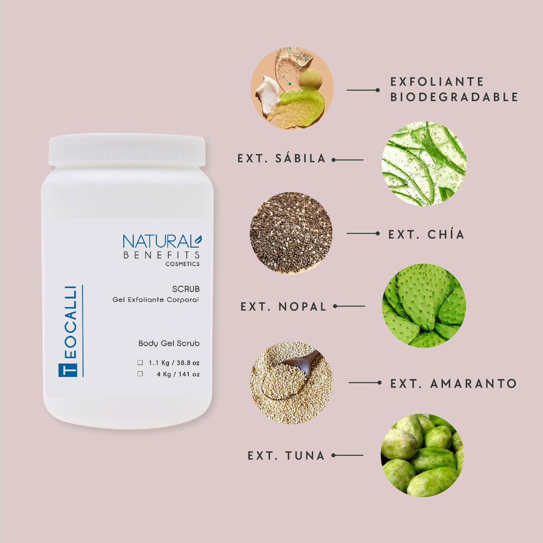 Formulado con exfoliante biodegradable, exts. sábila, chía, nopal, amaranto y tuna, este exfoliante elimina impurezas y células muertas, dejando la piel suave, hidratada y con un aspecto renovado.