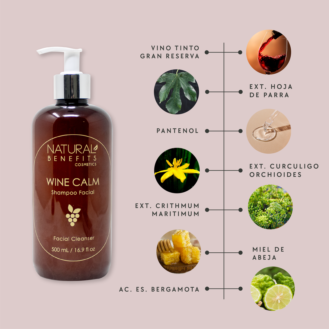 Experimenta una limpieza facial que nutre, revitaliza y protege tu piel. El Shampoo Facial está formulado con Vino Tinto Gran Reserva, Extracto de Hoja de Parra, pantenol, EXT. Curculigo orchioides y Resveratrol, activos ricos en antioxidantes que eliminan impurezas mientras preservan la hidratación natural de la piel.